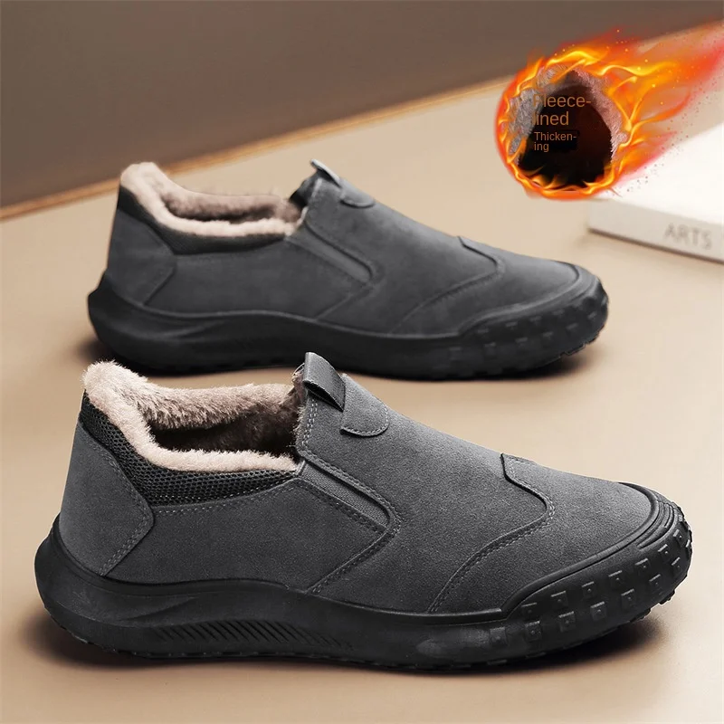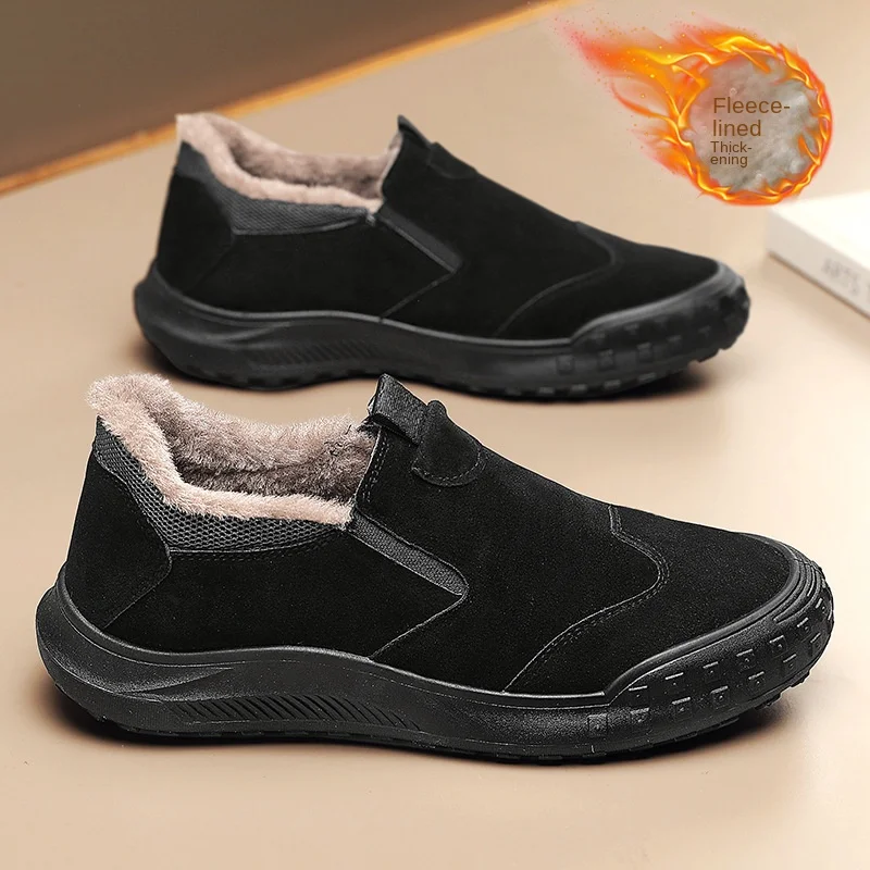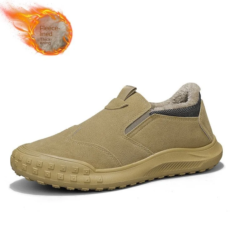 Men's Autumn Winter Solid Color Shoes Fashion Trend Insured Labor Slip-On Cotton Fleece for Outdoor Work Welder Mountaineering
